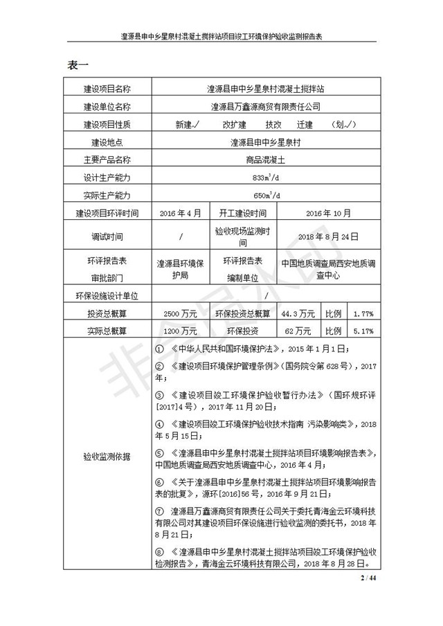 根據(jù)中華人民共和國國務院令第253號《建設項目環(huán)境保護管理條例》(中華人民共和國國務院令第682號《國務院關于修改〈建設項目環(huán)境保護管理條例〉的決定》和《建設項目竣工環(huán)境保護驗收暫行辦法》,嚴格依照有關法律法規(guī),建設項目環(huán)境保護設施驗收技術規(guī)范,本項目環(huán)評報告表和環(huán)保審批部門審批意見以及企業(yè)自行驗收相關要求等對本項目進行驗收,本項目符合環(huán)保驗收條件,可以通過環(huán)保驗收。 現(xiàn)將本項目竣工環(huán)境保護驗收情況進行公開,并征求公眾意見。一、征求意見日期:自公示之日起20個工作日 二、征求意見期間,驗收組接受反映公示的建設項目竣工環(huán)境保護驗收情況和問題的來信、來訪和來電。 三、聯(lián)系方式 聯(lián)系人:張工 電 話:15297122093 通訊地址:青海省西寧市城北區(qū)經四路創(chuàng)新創(chuàng)業(yè)大廈22號