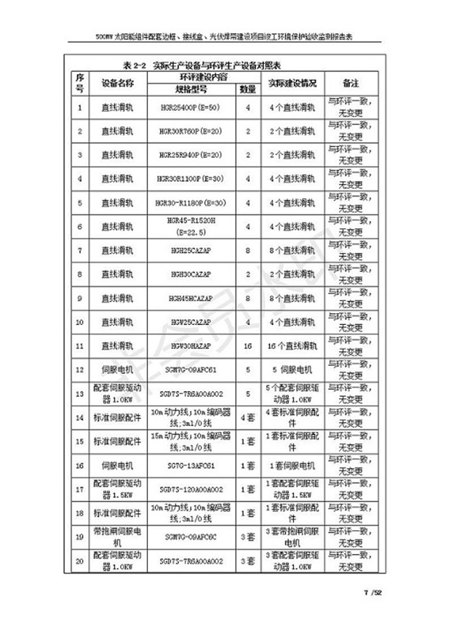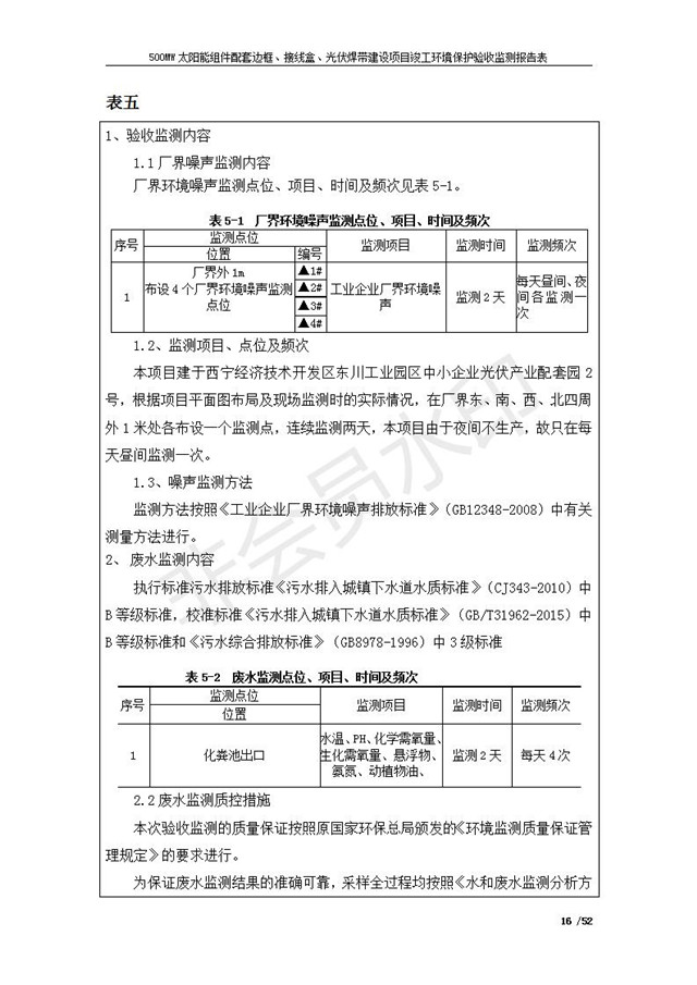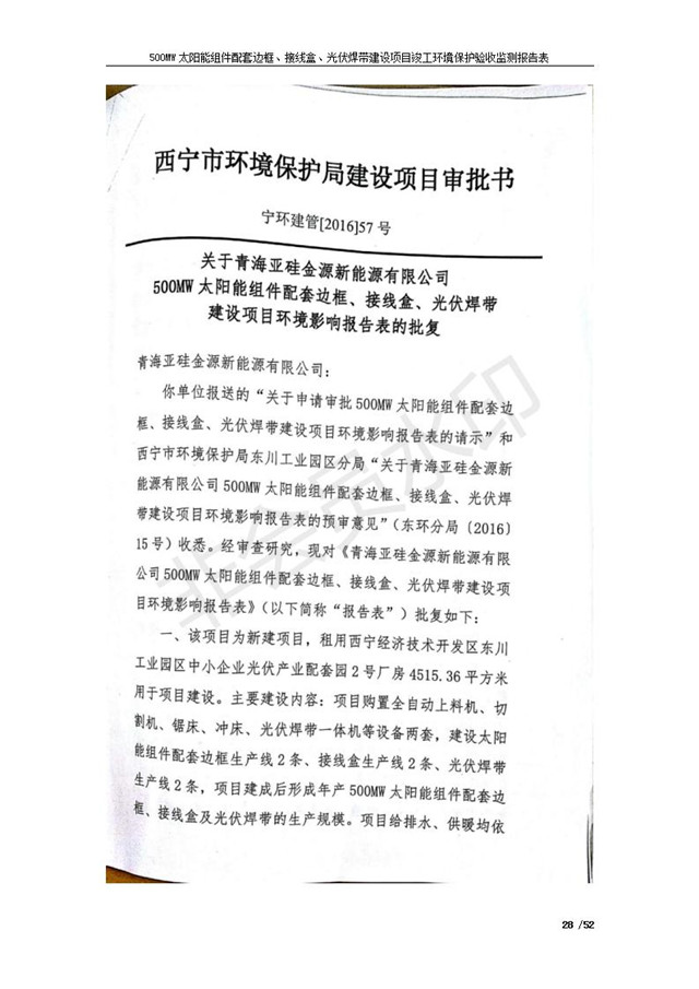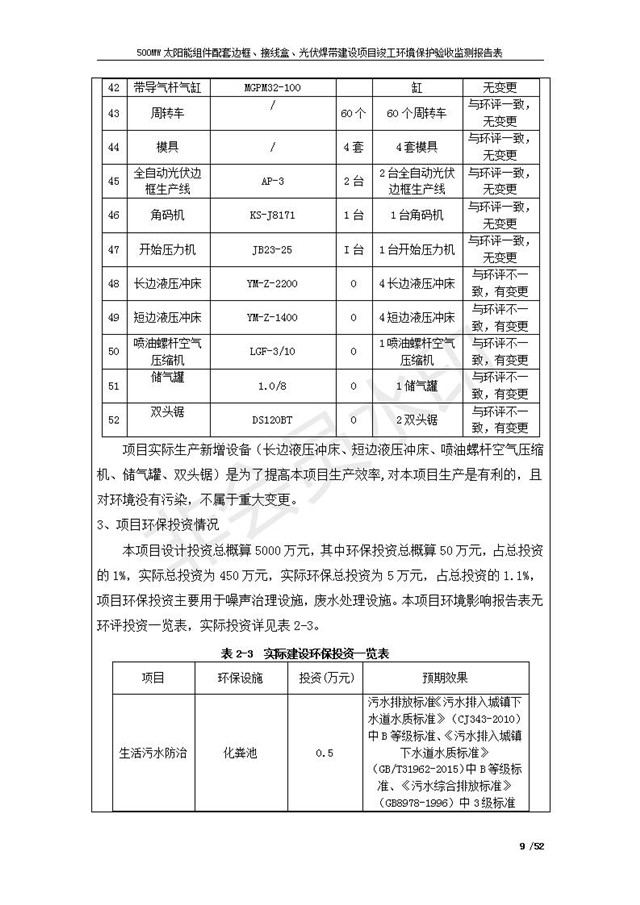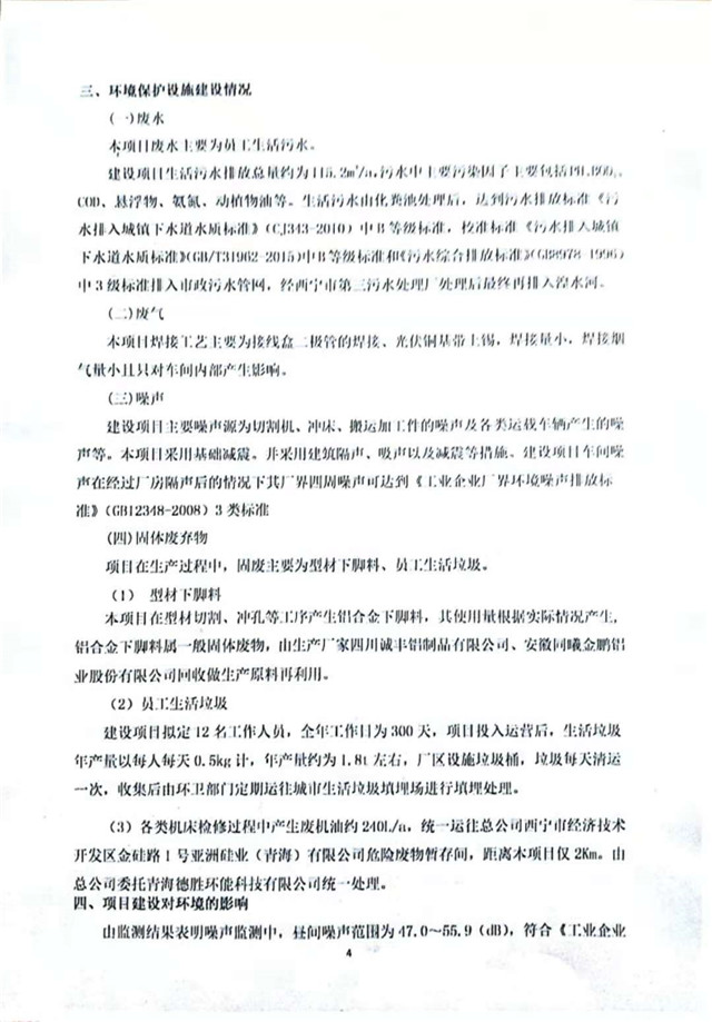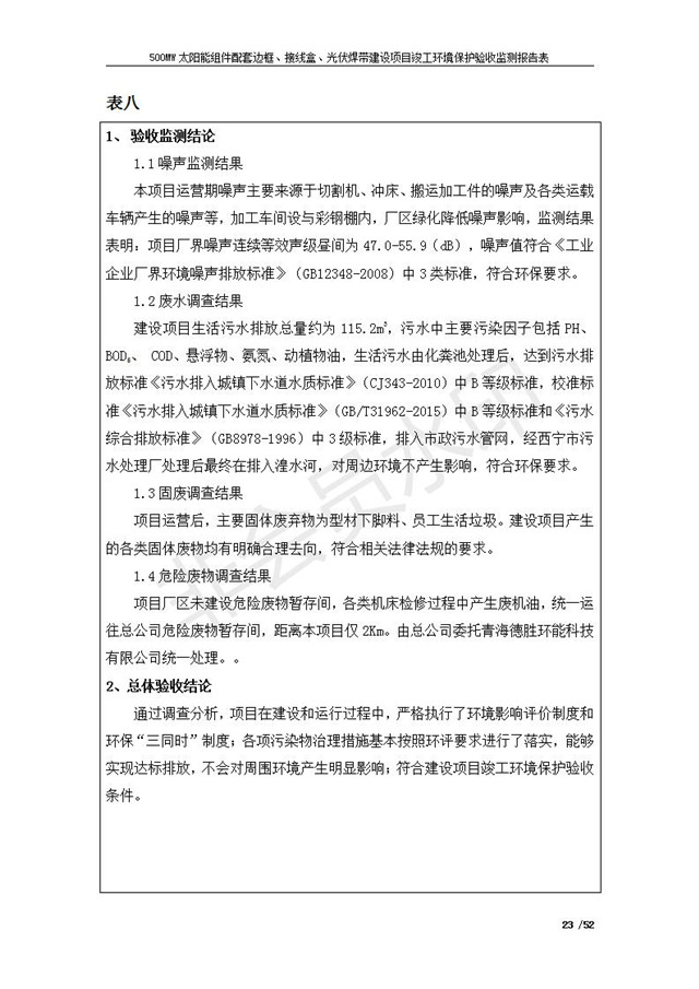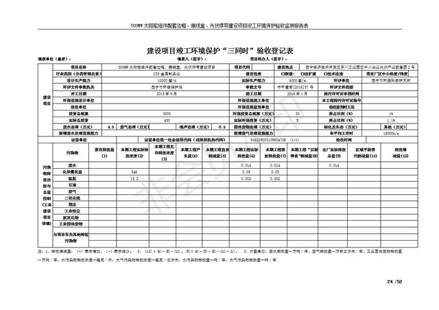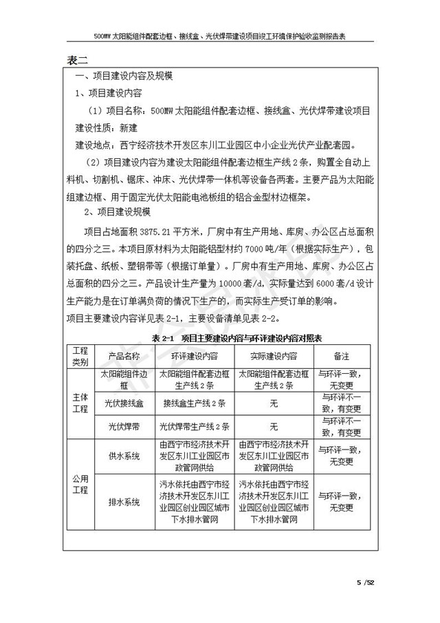 500MW太陽能組件配套邊框、接線盒、光伏焊帶建設(shè)項目竣工環(huán)境保護(hù)驗收監(jiān)測報告表公示