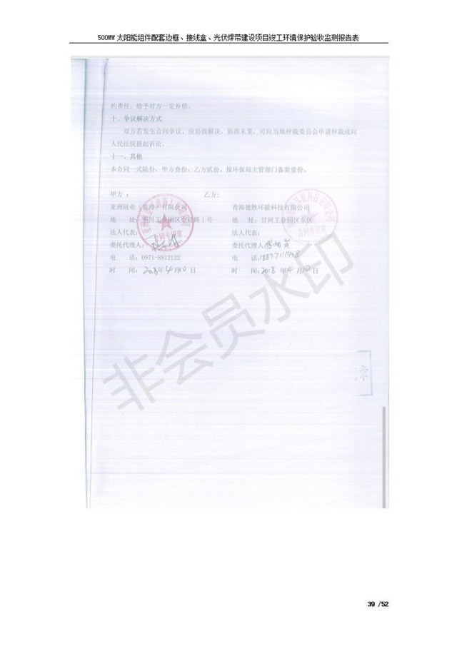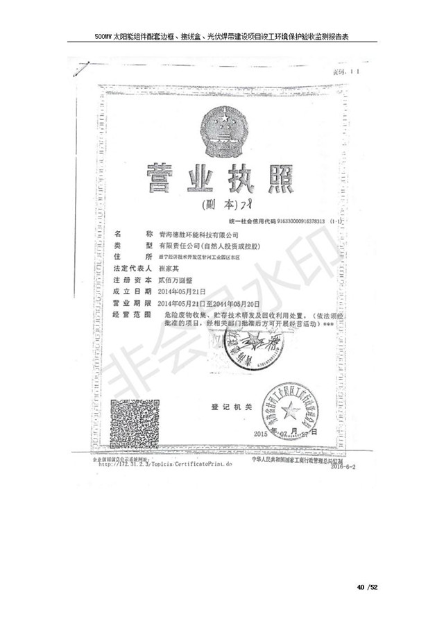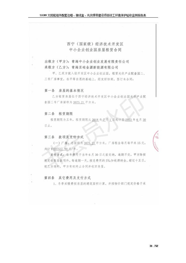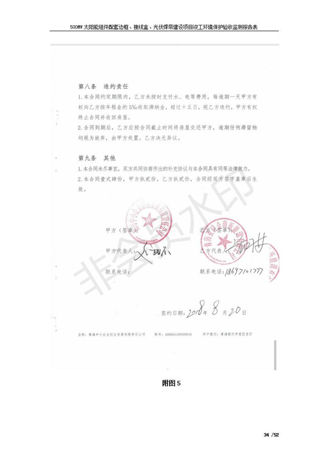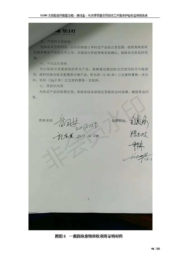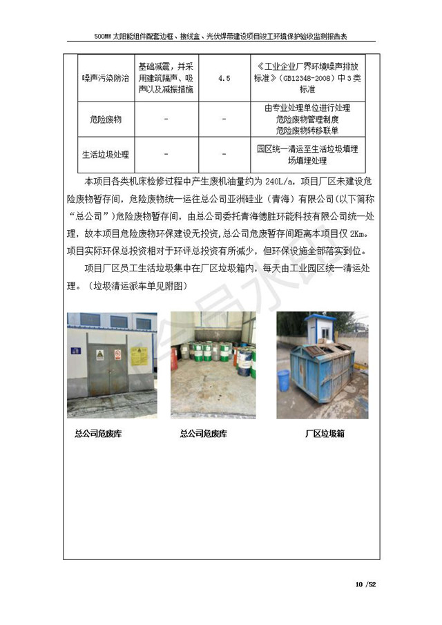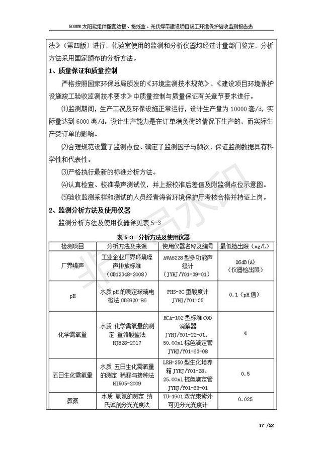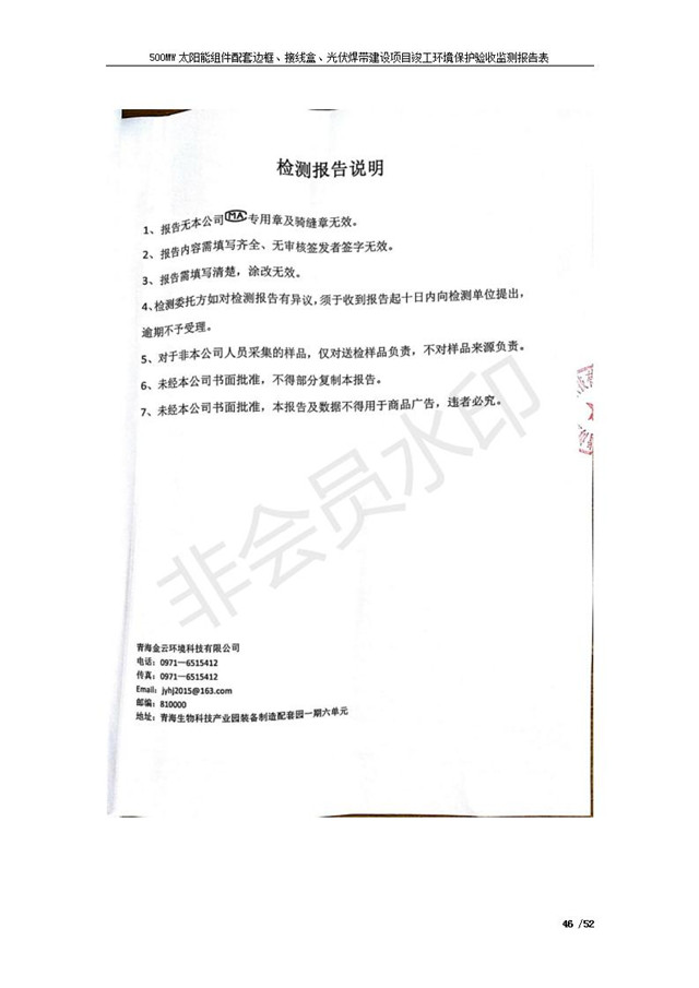 500MW太陽能組件配套邊框、接線盒、光伏焊帶建設(shè)項目竣工環(huán)境保護(hù)驗收監(jiān)測報告表公示