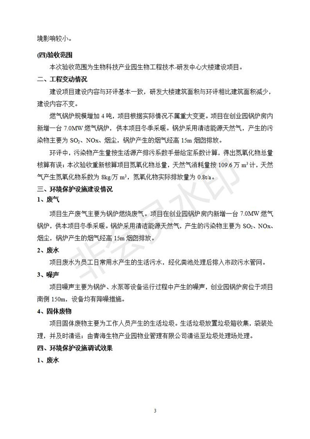 生物科技產(chǎn)業(yè)園生物工程技術(shù)-研發(fā)中心大樓建設(shè)項目竣工環(huán)境保護(hù)驗收監(jiān)測報告表公示