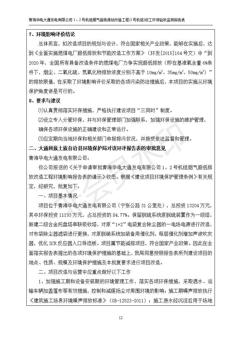 青海華電大通發(fā)電有限公司1、2號機組煙氣超低排放改造工程(1號機組) 竣工環(huán)境保護驗收監(jiān)測報告表公示發(fā)布日期:(2019-2-13) 點擊次數(shù):2693 |