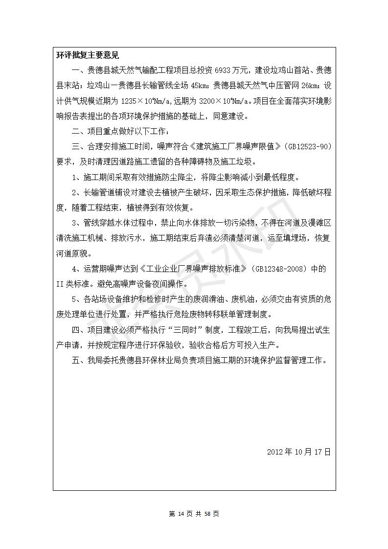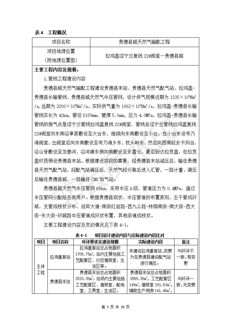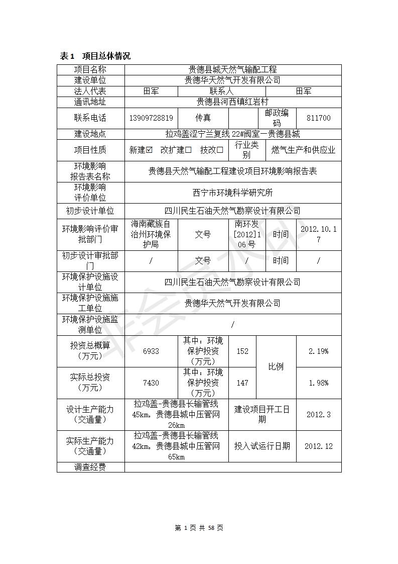 貴德縣城輸配管線工程竣工環(huán)境保護(hù)驗(yàn)收調(diào)查表公示