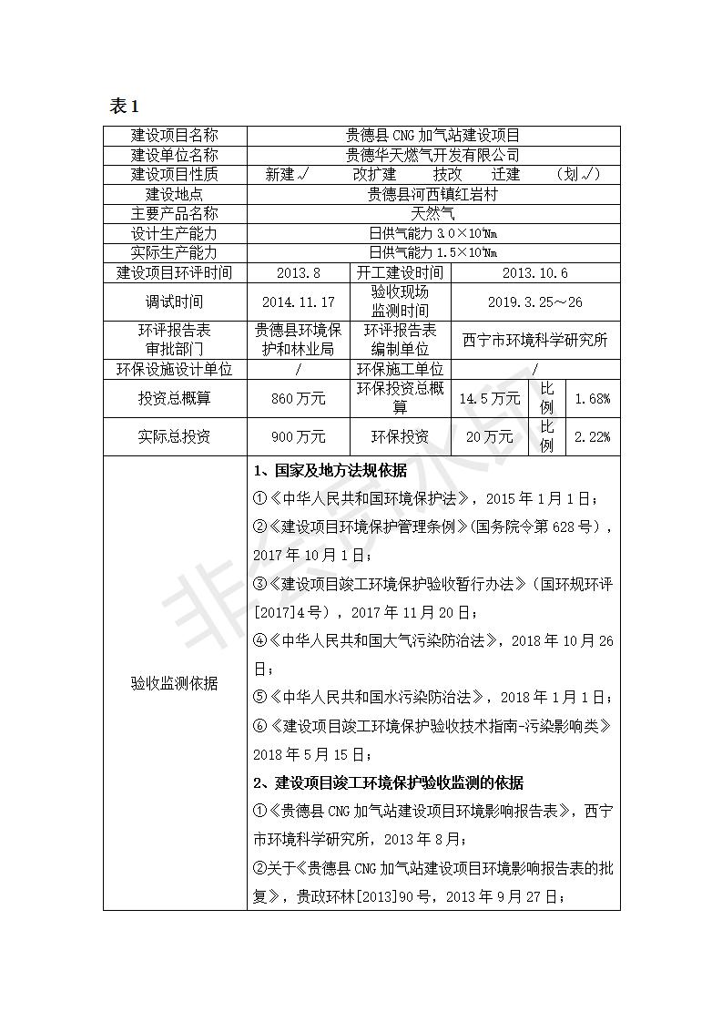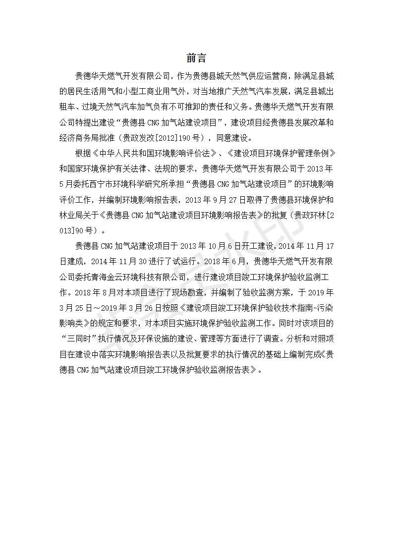 根據(jù)中華人民共和國(guó)務(wù)院令第682號(hào)《國(guó)務(wù)院關(guān)于修改〈建設(shè)項(xiàng)目環(huán)境保護(hù)管理?xiàng)l例〉的決定》和《建設(shè)項(xiàng)目竣工環(huán)境保護(hù)驗(yàn)收暫行辦法》(國(guó)務(wù)院令682號(hào)),青藏高原特色生物資源綠色開發(fā)工程研究中心建設(shè)項(xiàng)目竣工環(huán)境保護(hù)驗(yàn)收內(nèi)容(包括竣工環(huán)境保護(hù)驗(yàn)收調(diào)查報(bào)告和驗(yàn)收意見(jiàn))公示如下: 一、項(xiàng)目名稱:貴德縣CNG加氣站建設(shè)項(xiàng)目 二、地點(diǎn):貴德縣河西鎮(zhèn)紅巖村 三、建設(shè)單位:貴德華天燃?xì)忾_發(fā)有限公司 四、建設(shè)內(nèi)容:日供氣量為1.5×104Nm的加氣站 五、公示時(shí)間:二〇一九年五月二十九日至二〇一九年六月二十五日 六、聯(lián)系人:張工 公示期間,對(duì)上述公示內(nèi)容如有異議,請(qǐng)以書面形式反饋,個(gè)人須署真實(shí)姓名,單位須加蓋公章。