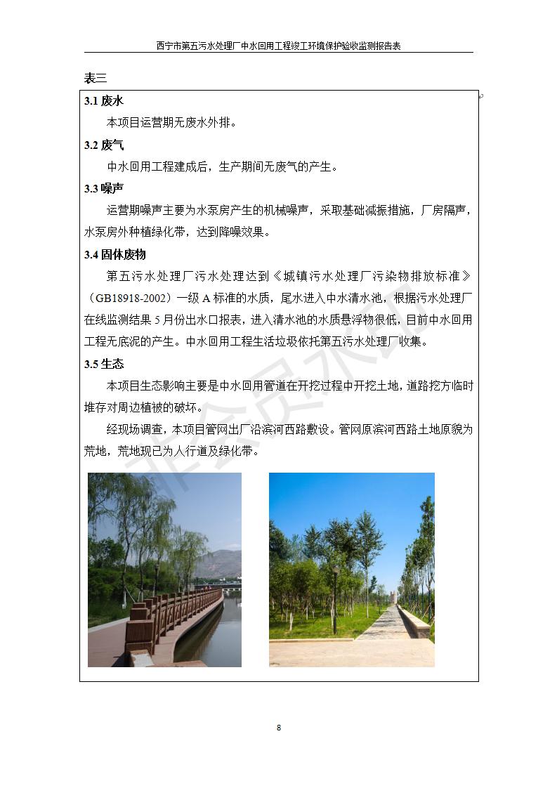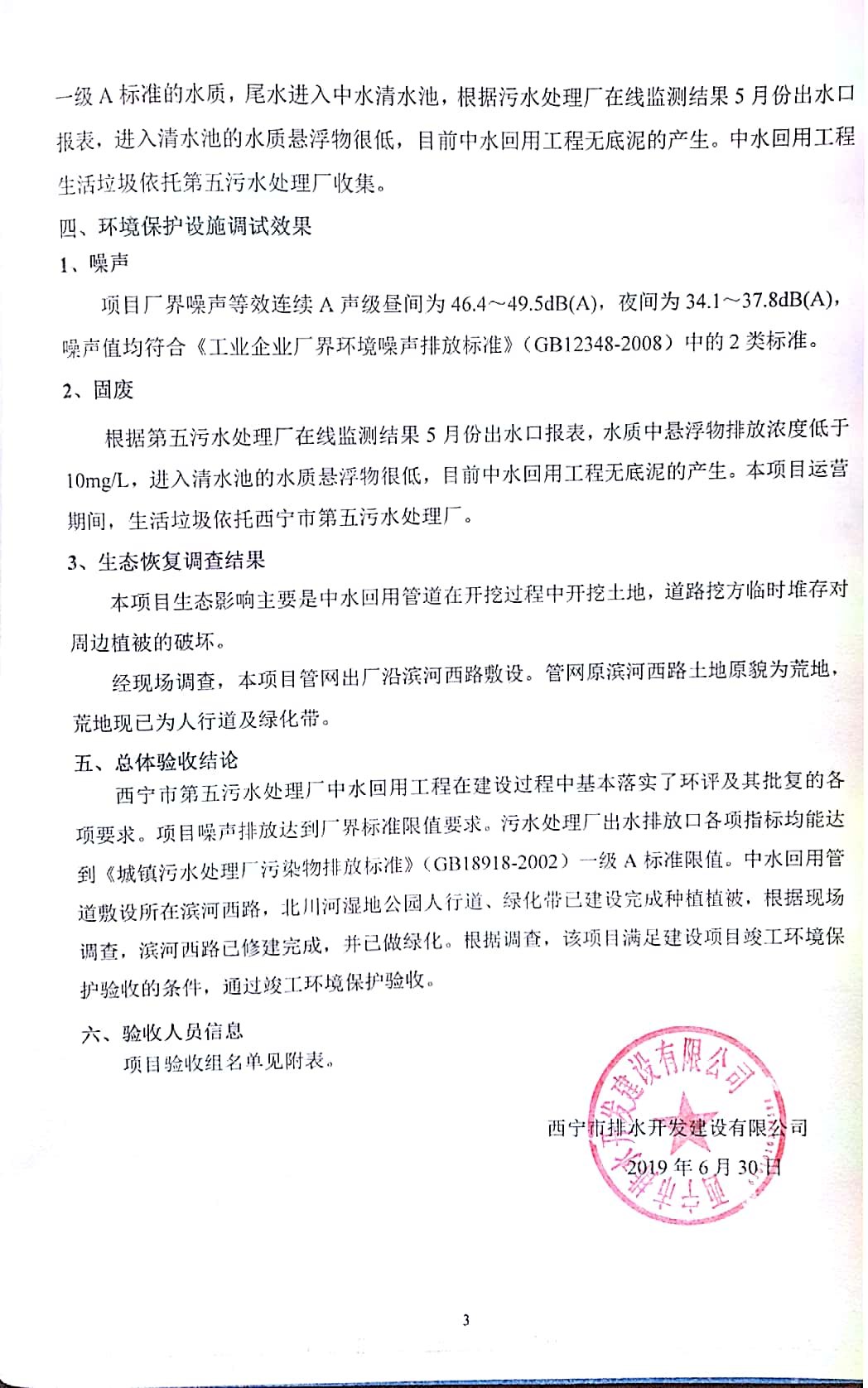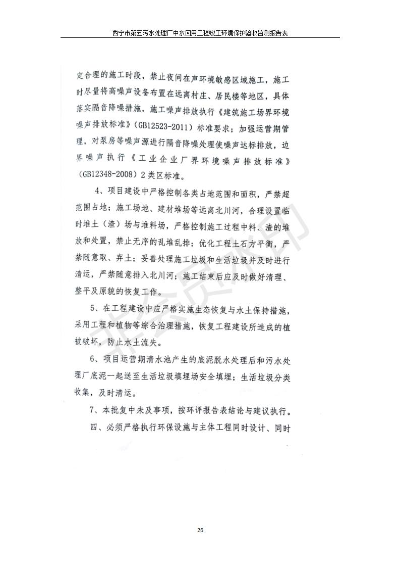 根據(jù)中華人民共和國(guó)國(guó)務(wù)院令第682號(hào)《國(guó)務(wù)院關(guān)于修改〈建設(shè)項(xiàng)目環(huán)境保護(hù)管理?xiàng)l例〉的決定》和《建設(shè)項(xiàng)目竣工環(huán)境保護(hù)驗(yàn)收暫行辦法》(國(guó)務(wù)院令682號(hào)),西寧市第五污水處理廠中水回用工程建設(shè)項(xiàng)目(包括竣工環(huán)境保護(hù)驗(yàn)收監(jiān)測(cè)報(bào)告表和驗(yàn)收意見(jiàn))公示如下。 一、項(xiàng)目名稱:西寧市第五污水處理廠中水回用工程建設(shè)項(xiàng)目 二、地點(diǎn):西寧市城北區(qū)廿十里鋪雙蘇堡 三、建設(shè)單位:西寧市排水開(kāi)發(fā)建設(shè)有限公司