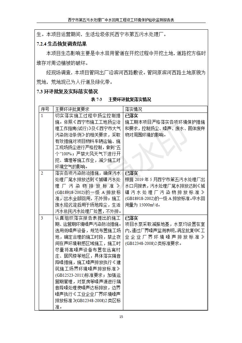 西寧市第五污水處理廠中水回用工程建設(shè)項(xiàng)目竣工環(huán)境保護(hù)驗(yàn)收監(jiān)測(cè)報(bào)告表公示發(fā)布日期:(2019-7-10) 點(diǎn)擊次數(shù):2458 |
