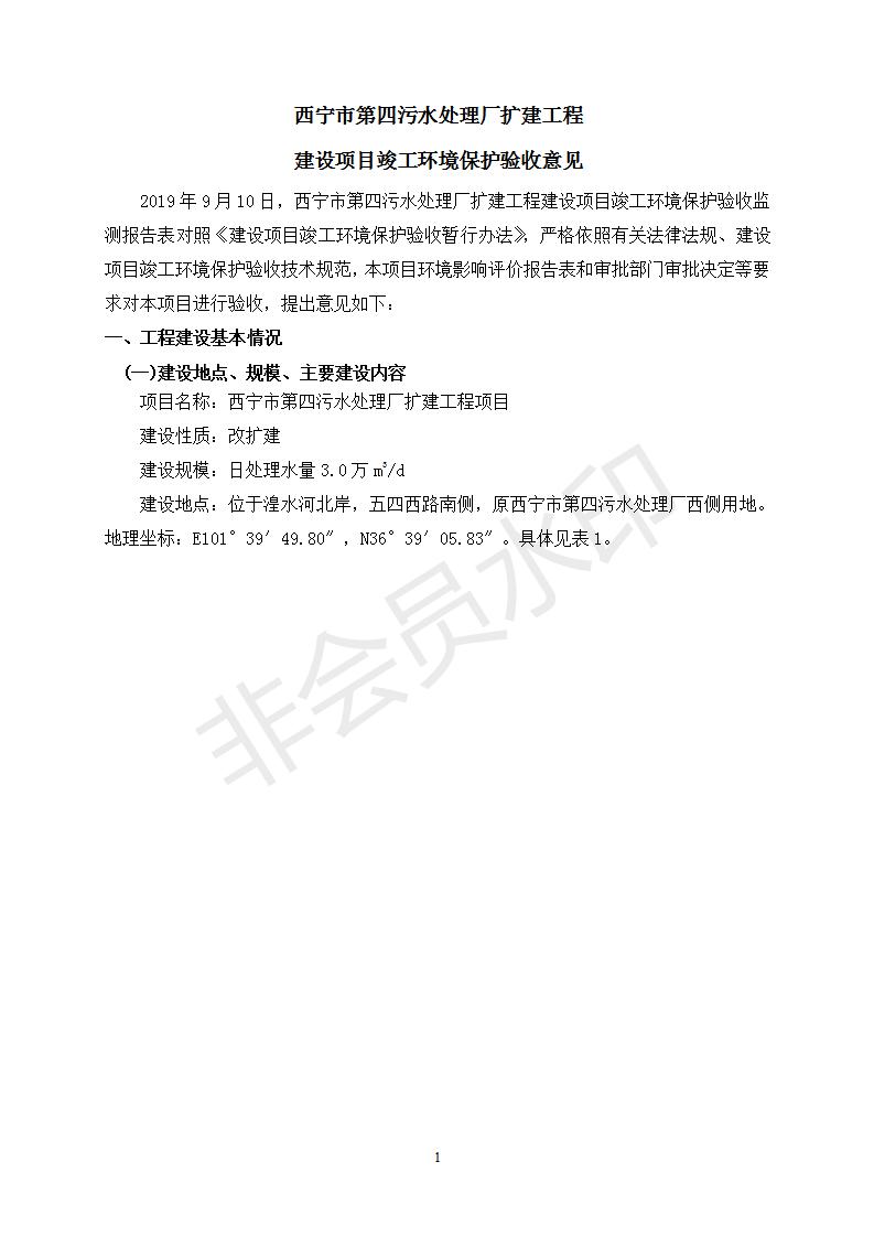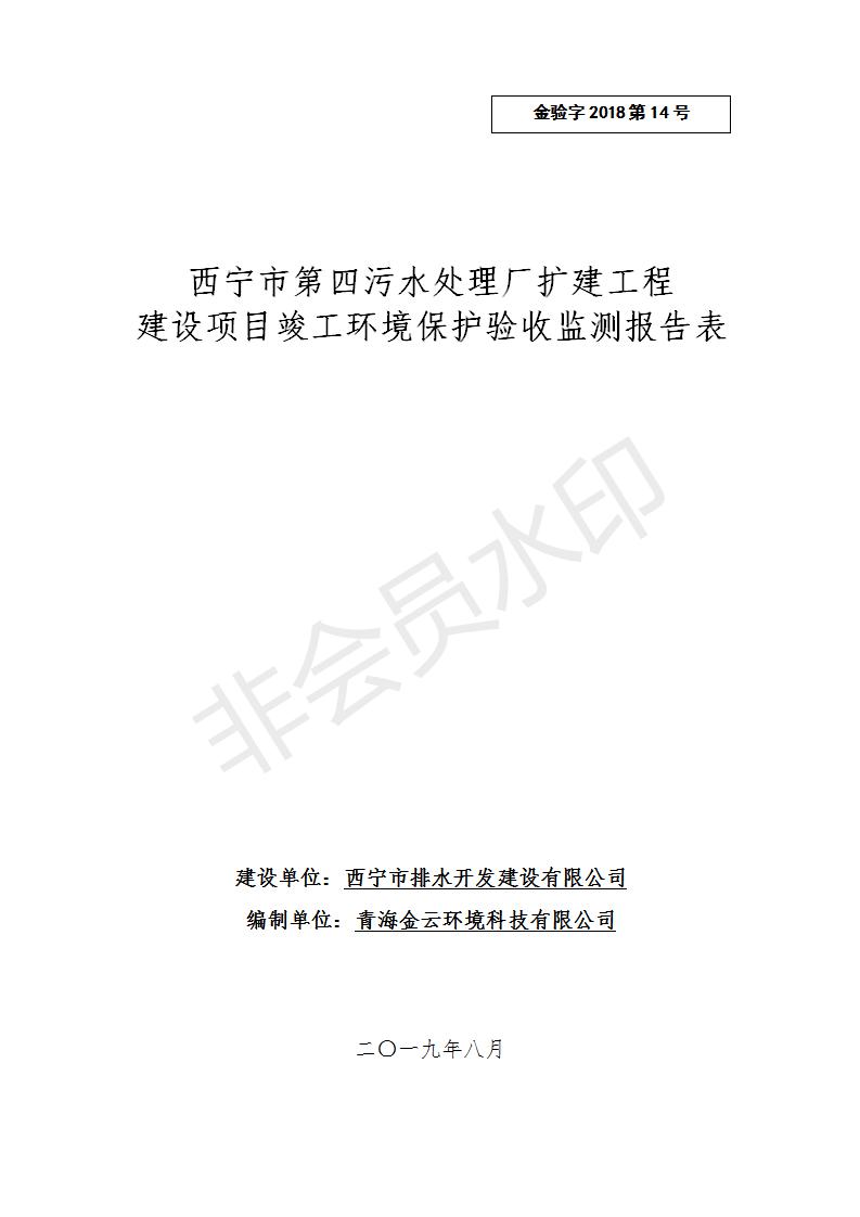 根據(jù)中華人民共和國國務(wù)院令第682號《國務(wù)院關(guān)于修改〈建設(shè)項目環(huán)境保護管理條例〉的決定》和《建設(shè)項目竣工環(huán)境保護驗收暫行辦法》(國務(wù)院令682號),西寧市第四污水處理廠擴建工程建設(shè)項目(包括竣工環(huán)境保護驗收監(jiān)測報告表和驗收意見)公示如下。 一、項目名稱:西寧市第四污水處理廠擴建工程建設(shè)項目 二、地點:五四西路南側(cè),原西寧市第四污水處理廠西側(cè)用地 三、建設(shè)單位:西寧市排水開發(fā)建設(shè)有限公司 四、建設(shè)內(nèi)容:第四污水處理廠擴建工程五、聯(lián)系人:張工 六、聯(lián)系電 話:0971-6515411 七、公示時間:二〇一九年九月十七日至二〇一九年十月十八日公示期間,對上述公示內(nèi)容如有異議,請以書面形式反饋,個人須署真實姓名,單位須加蓋公章。