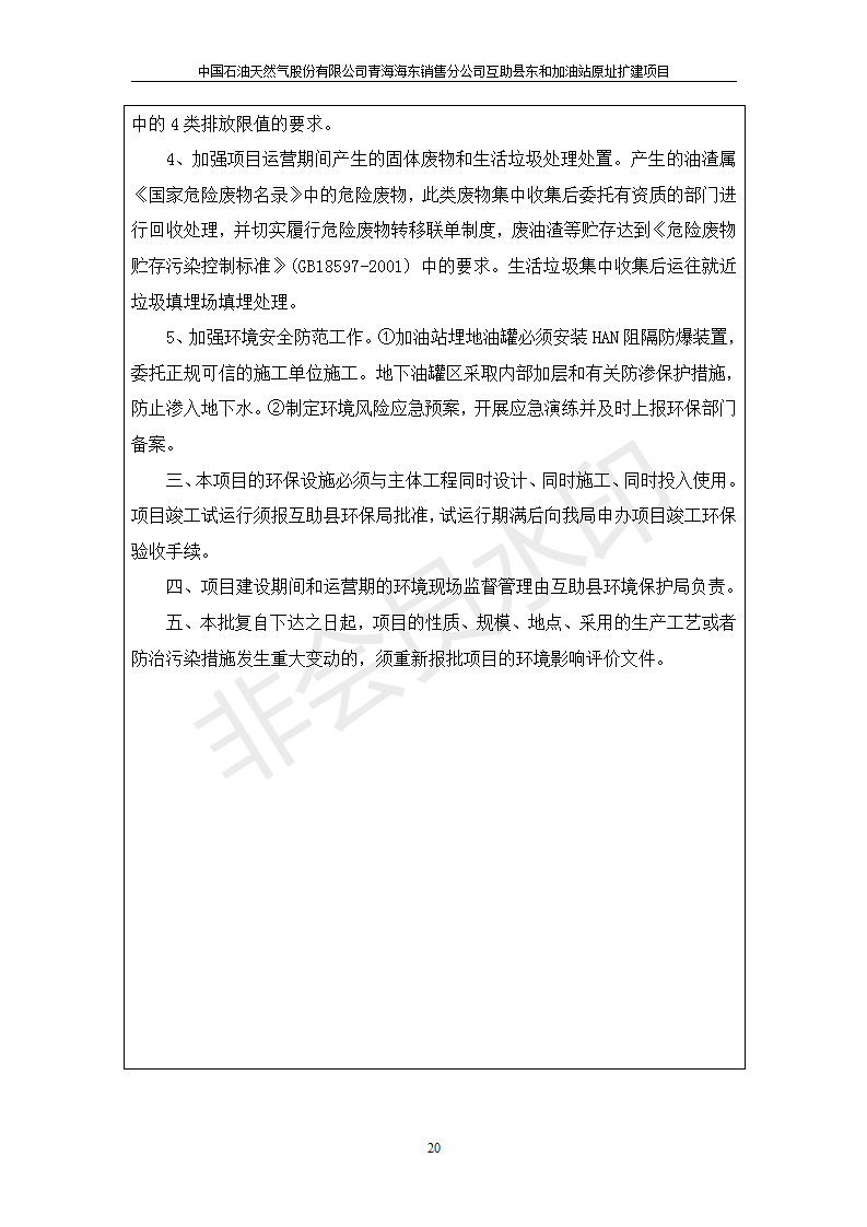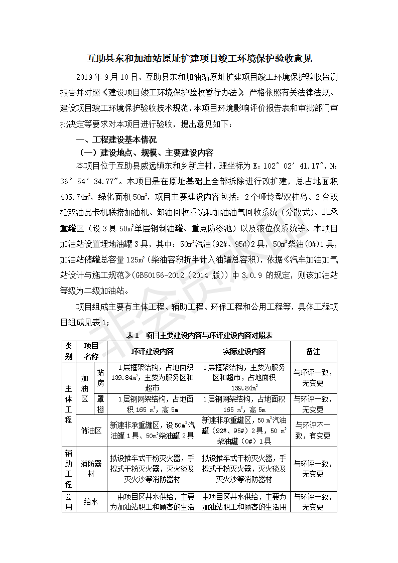 根據(jù)中華人民共和國(guó)國(guó)務(wù)院令第682號(hào)《國(guó)務(wù)院關(guān)于修改〈建設(shè)項(xiàng)目環(huán)境保護(hù)管理?xiàng)l例〉的決定》和《建設(shè)項(xiàng)目竣工環(huán)境保護(hù)驗(yàn)收暫行辦法》(國(guó)務(wù)院令682號(hào)),互助縣東和加油站原址擴(kuò)建項(xiàng)目(包括竣工環(huán)境保護(hù)驗(yàn)收監(jiān)測(cè)報(bào)告表和驗(yàn)收意見(jiàn))公示如下。 一、項(xiàng)目名稱:互助縣東和加油站原址擴(kuò)建項(xiàng)目 二、地點(diǎn):互助縣威遠(yuǎn)鎮(zhèn)東和鄉(xiāng)新莊村 六、聯(lián)系電話:0971-6515411 七、公示時(shí)間:二〇一九年九月二十七日至二〇一九年十月二十九日 公示期間,對(duì)上述公示內(nèi)容如有異議,請(qǐng)以書面形式反饋,個(gè)人須署真實(shí)姓名,單位須加蓋公章。