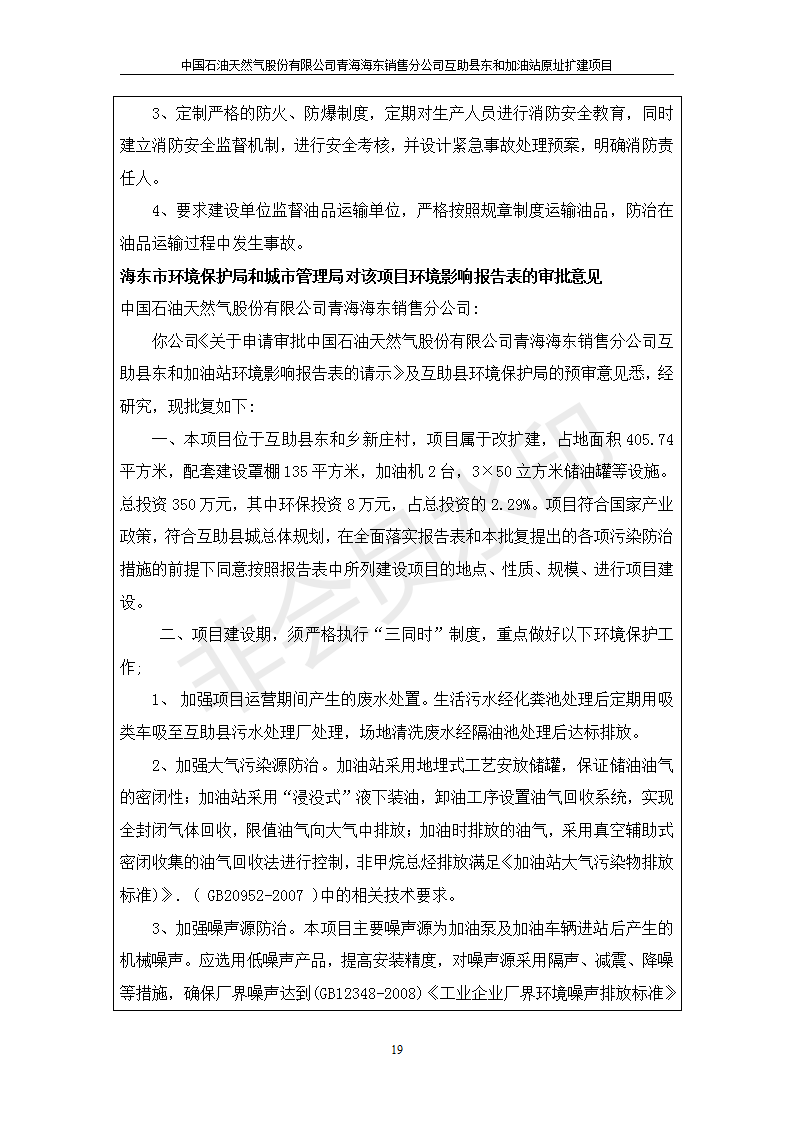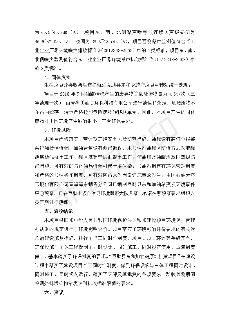 互助縣東和加油站原址擴(kuò)建項(xiàng)目 竣工環(huán)境保護(hù)驗(yàn)收監(jiān)測(cè)報(bào)告表公示發(fā)布日期:(2019-9-27) 點(diǎn)擊次數(shù):2531 |