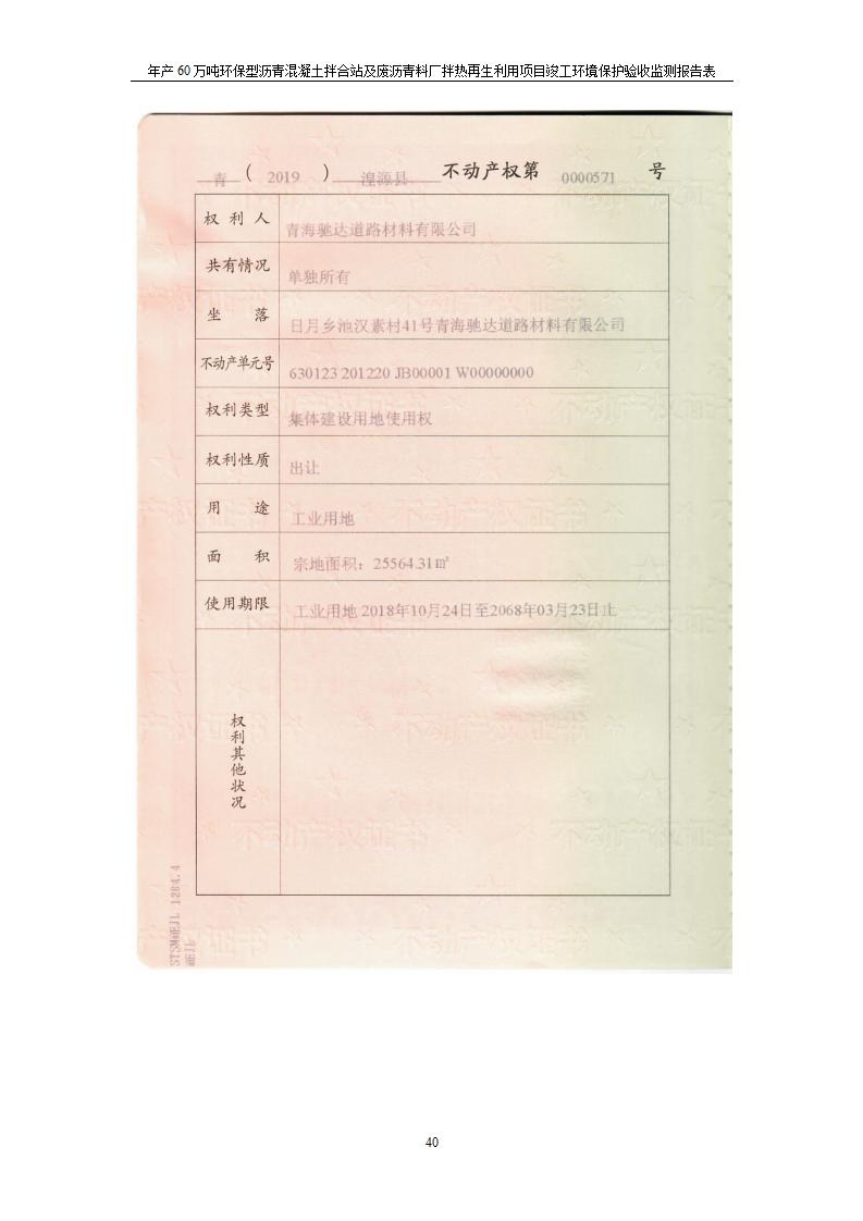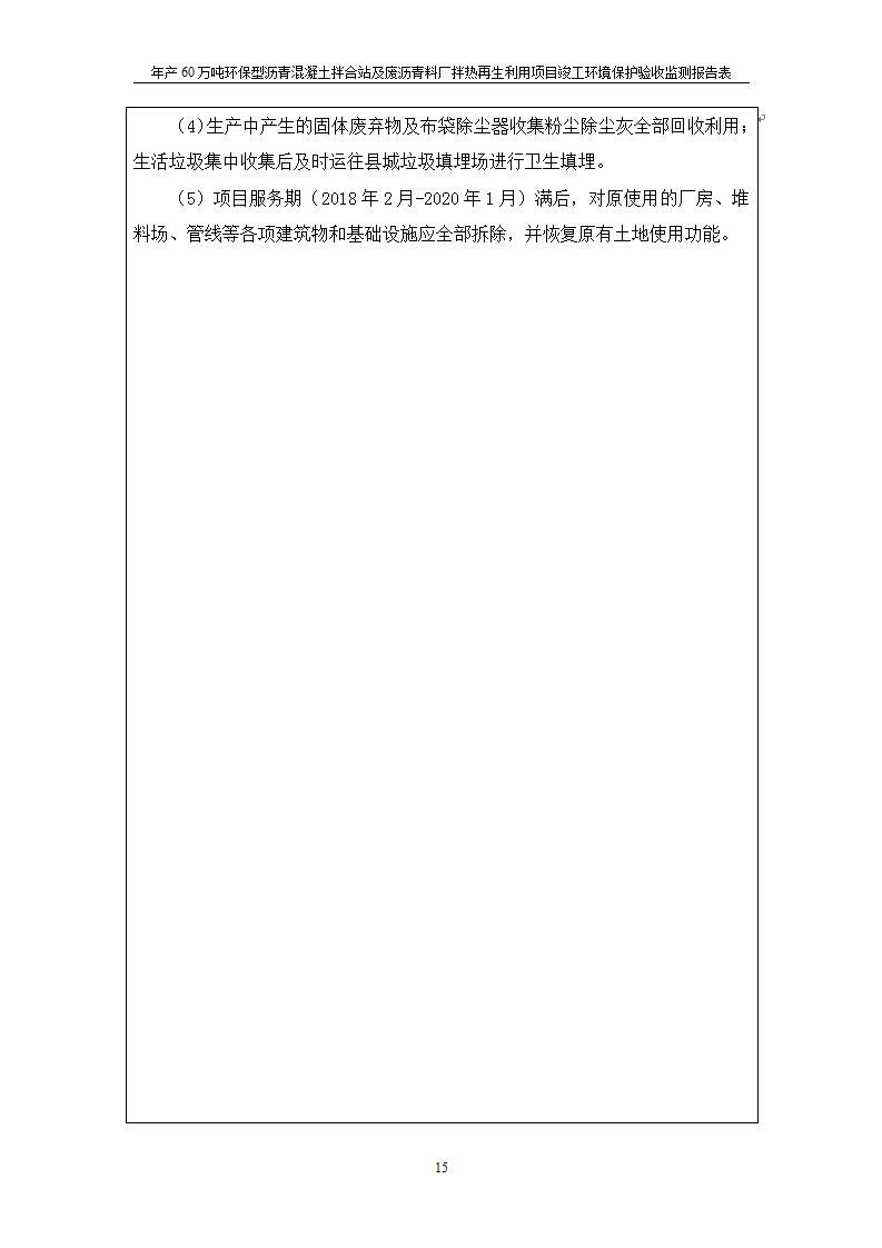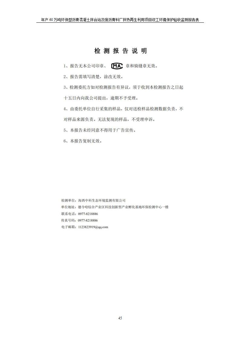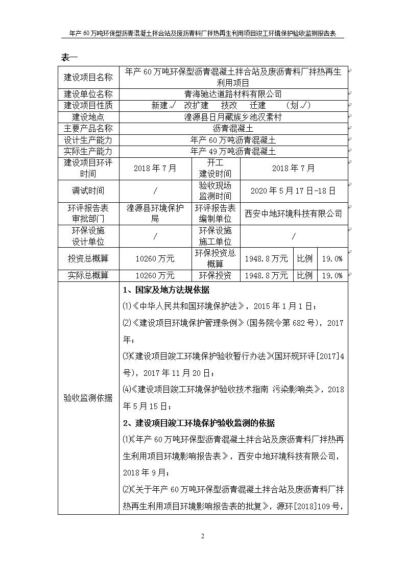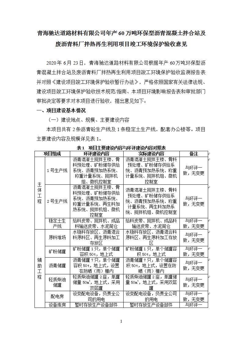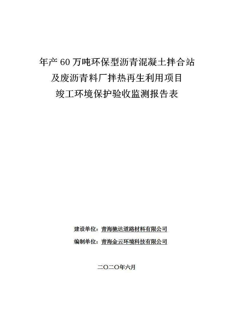 根據(jù)中華人民共和國國務(wù)院令第682號《國務(wù)院關(guān)于修改〈建設(shè)項(xiàng)目環(huán)境保護(hù)管理?xiàng)l例〉的決定》和《建設(shè)項(xiàng)目竣工環(huán)境保護(hù)驗(yàn)收暫行辦法》(國務(wù)院令682號),青海馳達(dá)道路材料有限公司年產(chǎn)60萬噸環(huán)保型瀝青混凝土拌合站及廢瀝青料廠拌熱再生利用項(xiàng)目竣工環(huán)境保護(hù)驗(yàn)收監(jiān)測報(bào)告表公示如下。 一、項(xiàng)目名稱:年產(chǎn)60萬噸環(huán)保型瀝青混凝土拌合站及廢瀝青料廠拌熱再生利用項(xiàng)目竣工環(huán)境保護(hù)驗(yàn)收監(jiān)測報(bào)告表 二、地點(diǎn):湟源縣日月藏族鄉(xiāng)池漢素村 三、建設(shè)單位:青海馳達(dá)道路材料有限公司 四、建設(shè)內(nèi)容:本項(xiàng)目共有2條瀝青砼生產(chǎn)線及1條穩(wěn)定土生產(chǎn)線,配套辦公樓等。 五、聯(lián)系人:楊工 六、聯(lián)系電 話:0971-6515411 七、公示時(shí)間:二〇二〇年七月六日至二〇二〇年七月三十一日 公示期間,對上述公示內(nèi)容如有異議,請以書面形式反饋,個(gè)人須署真實(shí)姓名,單位須加蓋公章。