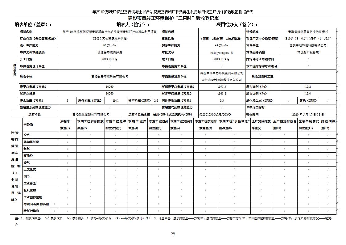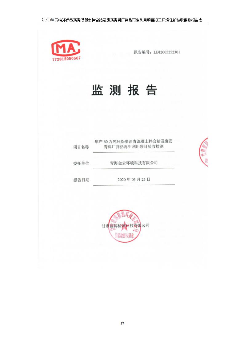 年產(chǎn)60萬噸環(huán)保型瀝青混凝土拌合站及廢瀝青料廠拌熱再生利用項(xiàng)目竣工環(huán)境保護(hù)驗(yàn)收監(jiān)測報(bào)告表公示發(fā)布日期:(2020-7-6) 點(diǎn)擊次數(shù):4013 |